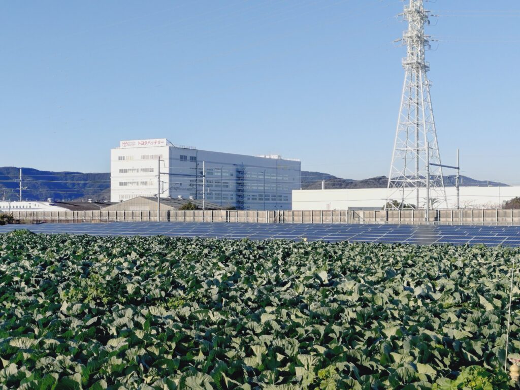 どうでしょう。不思議な光景だと思いませんか? 左端には、日本の技術の結晶である『新幹線』が走り抜けています。一番手前には、青々とした『キャベツ畑』。その 奥にはエネルギーを作る『太陽光パネル』、さらに向こうには巨大な『工場』が見えます。